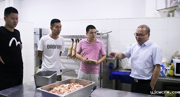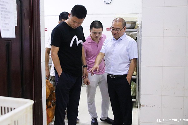 张院长一行从餐具消毒、餐厅卫生、原料仓库、进货台账、操作规范、生熟分开、食品加工等多个方面对食堂进行了全面检查,并提出明确要求:一是食堂员工必须衣着穿戴整洁干净,禁止佩戴首饰;二是食堂卫生每天都要进行大扫除,要全方位将垃圾清理干净;三是对于易变质的肉类食物要做相应的保鲜处理,杜绝食品过期变质;四是食堂必须要有一套完善的管理制度,要落实主要负责人,负责人要牵头做好食堂的食品安全工作;五是学院后勤保障部要加大对食品安全的监管力度,协助食堂做好相应工作。